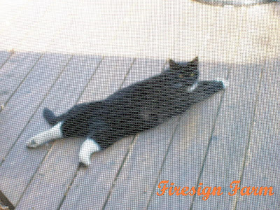 Then, there's Albert to figure into this too. Albert is our big tuxedo cat. Besides being covered with black hair, he'll immediately roll in the dirt whenever he gets outside. And then comes back in to nap in the middle of the bed (as well as ending up between us most nights too). My summer bedspread is peach-colored floral pieces on a cream-colored background. Between the cat and nightly opened windows downwind of a canyon with a dirt road, that quilt (and the one on the guest bed - also a favorite Albert napping spot) definitely need to be washed.